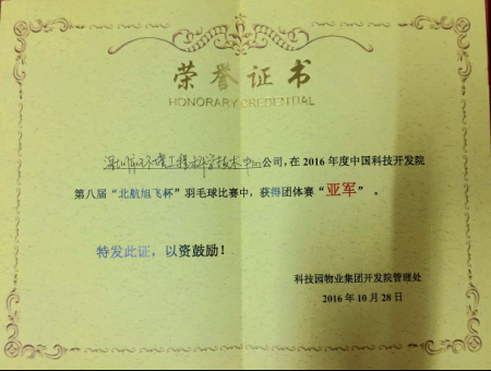 10月28日,代表隊參加科技園物業(yè)舉辦的第八屆羽毛球賽。賽場上,隊員團結(jié)合作,奮力拼搏,勇奪團體賽亞軍,盡顯環(huán)科中心風(fēng)采。(綜合管理部)