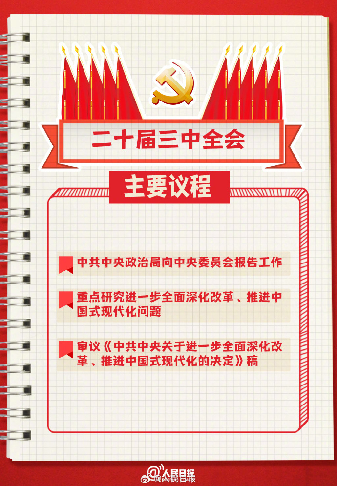 中國共產(chǎn)黨第二十屆中央委員會第三次全體會議于7月15日至18日在北京召開。二十屆三中全會主要議程有哪些?進(jìn)一步全面深化改革的總目標(biāo)是什么?二十大以來歷次中央全會研究了哪些內(nèi)容?二十屆三中全會是個什么會?轉(zhuǎn)存學(xué)習(xí)↓↓