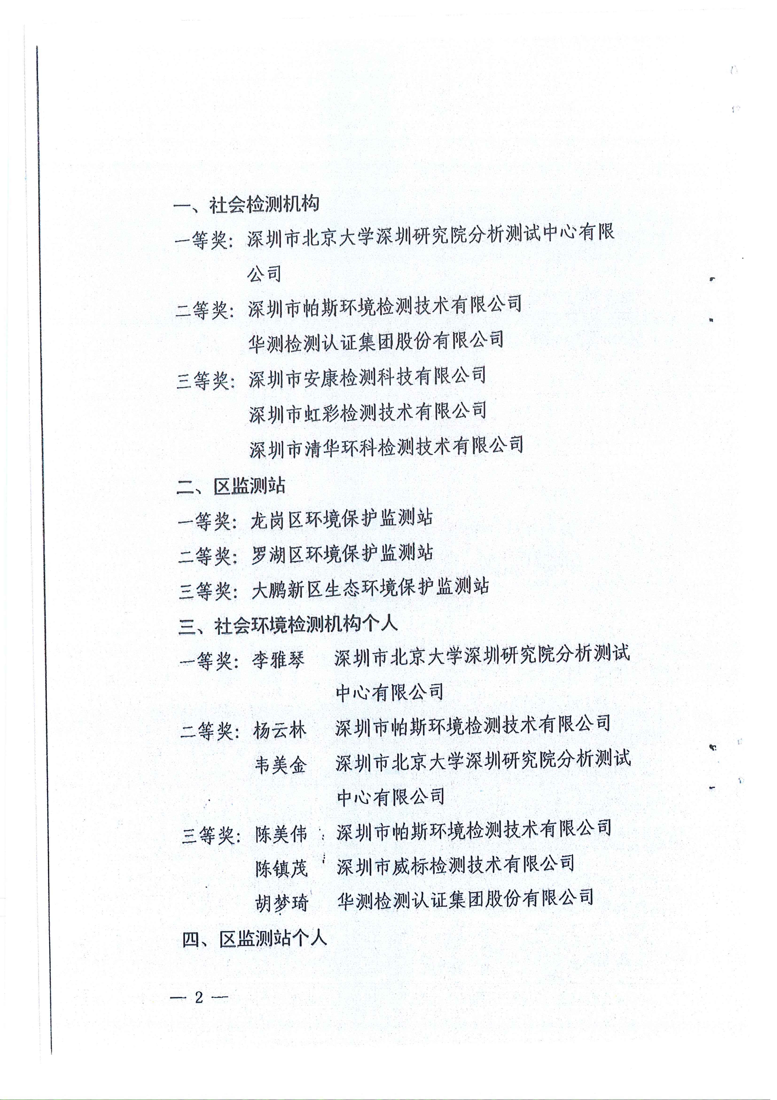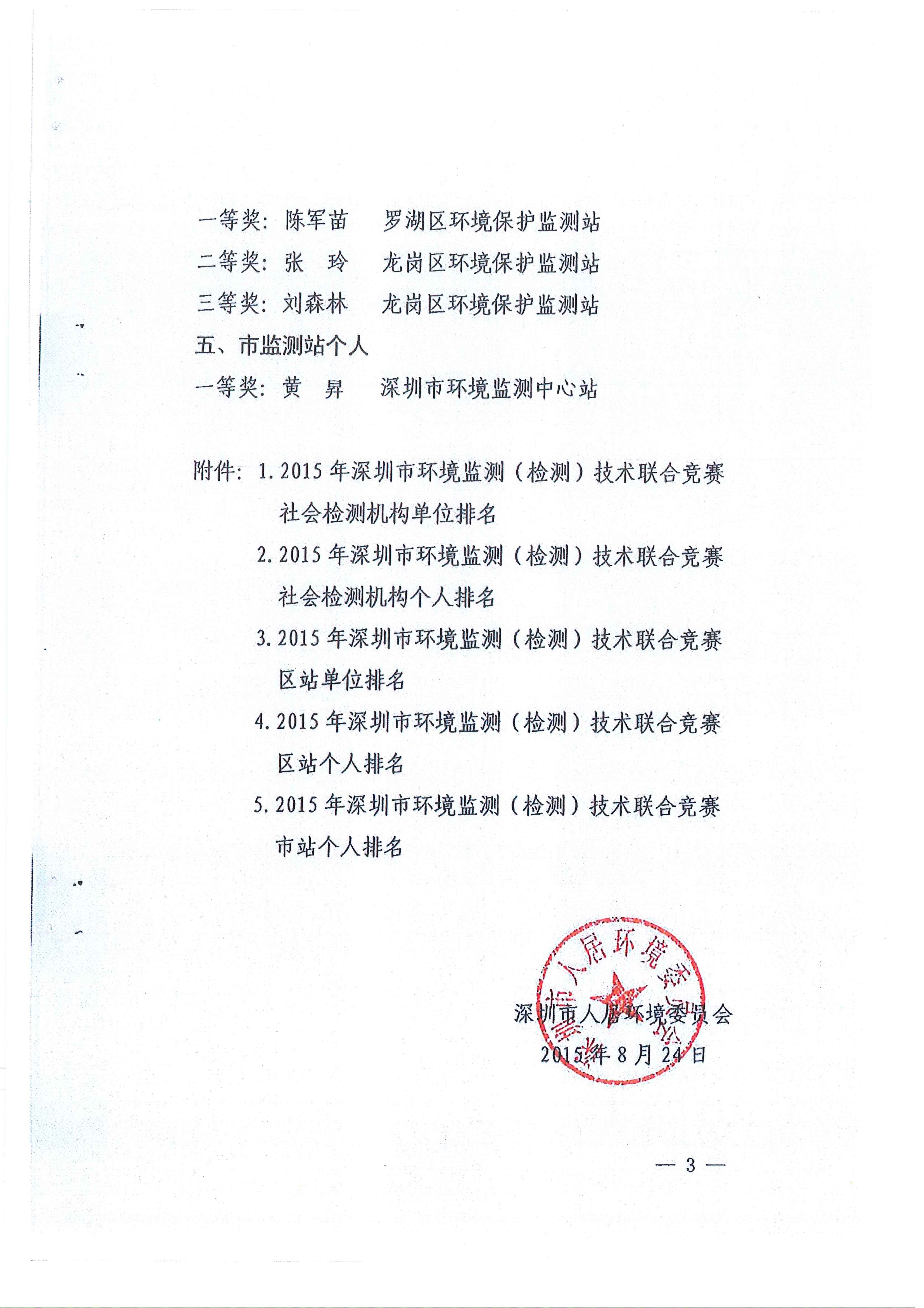 市人居環(huán)境委關于2015年深圳市環(huán)境監(jiān)測(檢測)技術聯(lián)合競賽結果的通報
