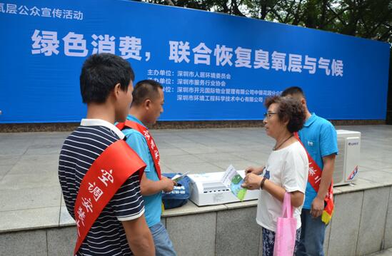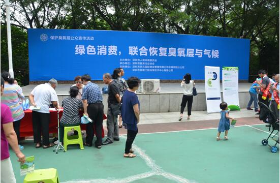 聯(lián)合國環(huán)境規(guī)劃署為今年的國際保護臭氧層日確定的主題是“臭氧與氣候:世界聯(lián)合方能恢復”,呼吁世界各國、社會各界按照“迪拜路徑”削減溫室氣體HFCs(氫氟烴),聯(lián)合起來恢復臭氧層和氣候。為契合今年的主題,召集更多的相關方參與到保護臭氧層工作中來,深圳市人居環(huán)境委組織了近200名社區(qū)居民和十多家物業(yè)管理單位、制冷設備維修企業(yè)、《深圳特區(qū)報》等媒體一共300余人參與了本次宣傳活動?;顒咏M織人員向參會人員普及了保護臭氧層和氣候變化知識,號召社區(qū)居民綠色消費和使用制冷設備、物業(yè)管理單位加強中央空調(diào)日常保養(yǎng)、制冷設備維修企業(yè)規(guī)范安裝和維修制冷設備、社會各界在各自的工作和生活領域攜手減少制冷劑的使用和泄漏,共同修復臭氧層和氣候。在活動現(xiàn)場,獲得深圳市2016年空調(diào)安裝和維修技能大賽的前六名空調(diào)維修技師還通過實物展示向社區(qū)居民講解怎樣科學合理地挑選、安裝、使用、保養(yǎng)、維修家用空調(diào)來減少對臭氧層和氣候的破壞。