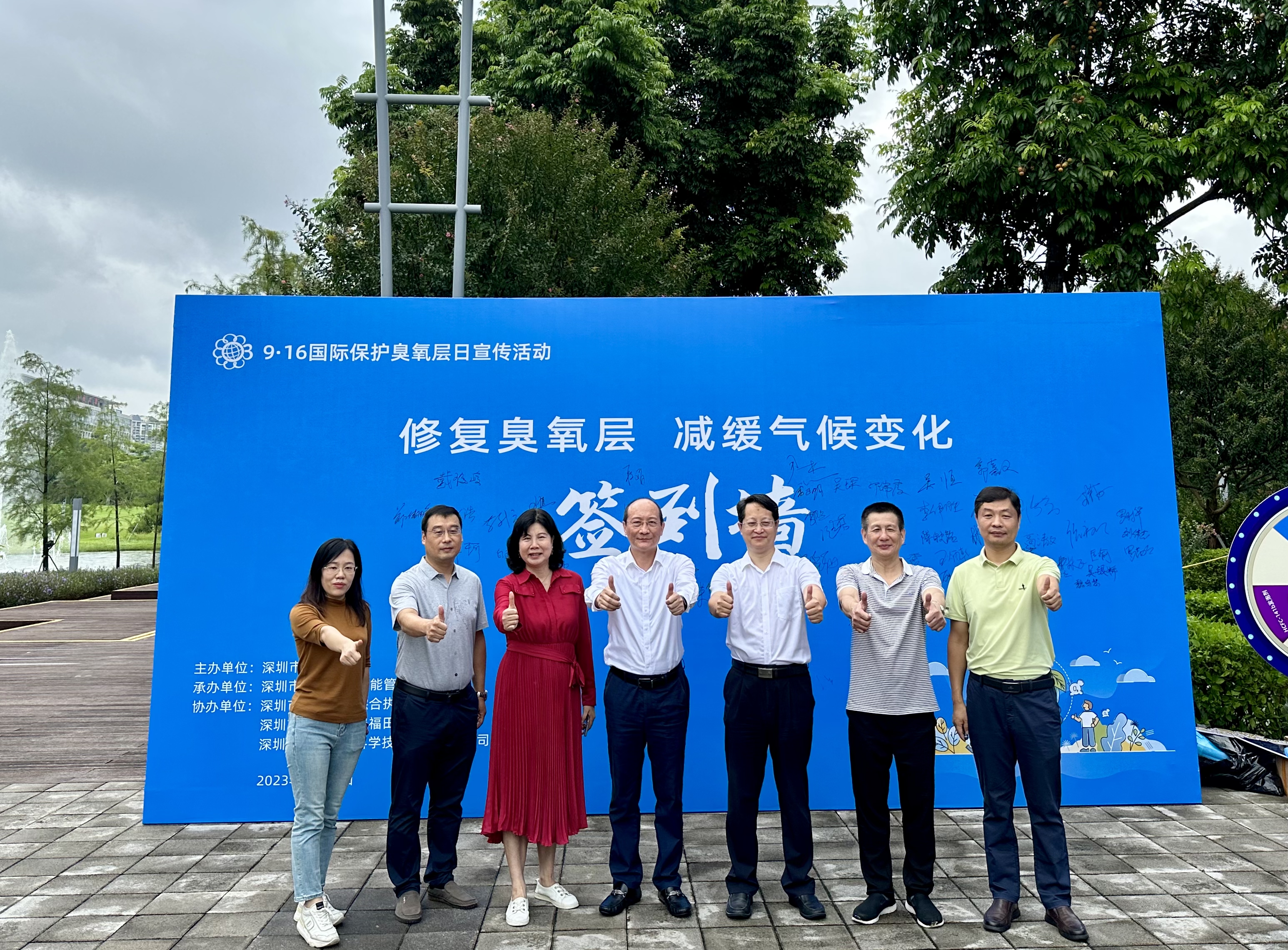 在第29個國際保護臭氧層日,深圳市環(huán)境工程科學(xué)技術(shù)中心有限公司(以下簡稱環(huán)科中心)有幸作為協(xié)助單位參與到深圳市生態(tài)環(huán)境局舉辦主題為“修復(fù)臭氧層 減緩氣候變化”的宣傳活動中。會上,市生態(tài)環(huán)境局黨組成員、副局長尹杰的致辭更堅定了深圳在鞏固“保護臭氧層履約管理”國內(nèi)一流水平的基礎(chǔ)上,將繼續(xù)加大力度推進2030年前徹底淘汰最后一類消耗臭氧層物質(zhì)含氫氯氟烴、并逐步開始削減溫室氣體氫氟碳化物工作的信心和決心。來自生態(tài)環(huán)境系統(tǒng)、市場監(jiān)督管理局、海關(guān)、工業(yè)界、社區(qū)的200余名參會代表深感鼓舞,并表示會以實際行動支持擁護此項工作。